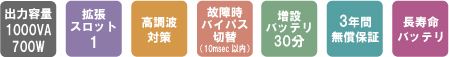 | 出力容量 | 1000VA/700W |