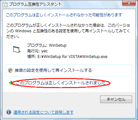 (6) 「プログラム互換性アシスタント」画面が表示されることがありますので