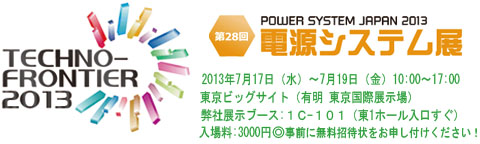 【展示会】「TECHNO-FRONTIER 2013 第28回電源システム展(7/17〜7/19、東京ビッグサイト)」に出展します